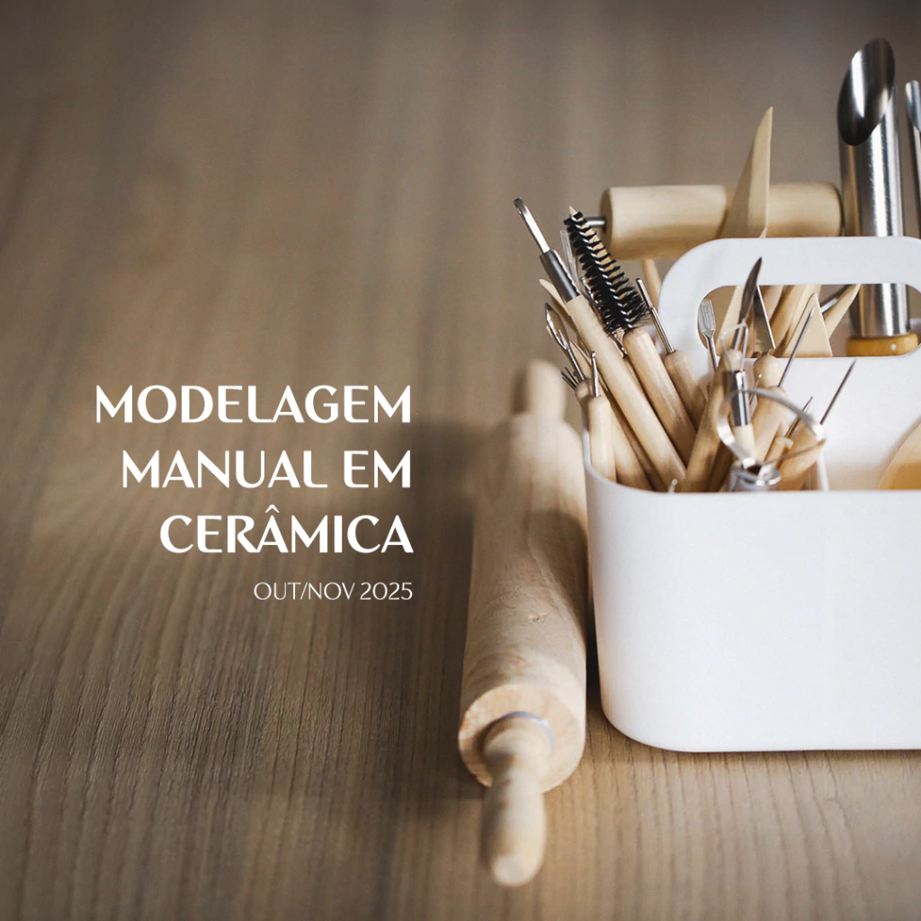 Sobre o curso | Durante o módulo, cada participante terá contato com as principais técnicas manuais e produzirá 3 a 5 peças autorais (5kg de argila), passando pelo processo completo: da modelagem à esmaltação/pintura.